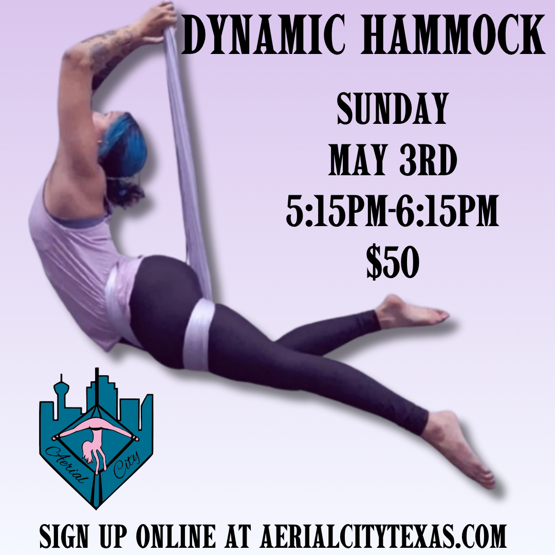Dynamic Hammock This choreographed hammock sequence will feature strong transitions, dimensional poses, and even a drop or two! Must have completed intro level on any apparatus and prior silk or hammock experience is encouraged. Limited spots available! Sign up now to reserve your spot!