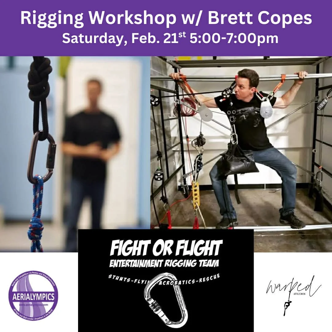 Brett Copes of FoFE is an Acrobatic Rigger, Stunt Rigger and Performer Flying specialist with 20+ years of experience. Having worked with Cirque Du Soleil, Marvel Universe, Cavalia, IATSE, ShowRig, Peter Pan 360, Venardos Circus, NECCA, the Chicago Contemporary Circus Festival, Superbowl LVIII, and as well as many film/tv productions. Specializing in Safety and Training, Brett has taught this workshop for USITT, Acrobatic Arts Festival, ESA Conference, and over 100+ Aerial Arts and Circus studios on 4 continents.